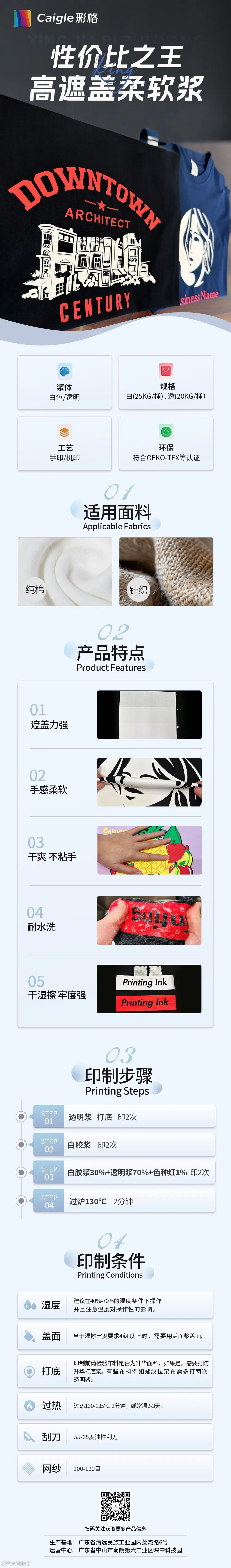 广东彩格科技有限公司是一家集研发、生产、销售于一体的新型环保印花材料企业。总部设立在广东省连州市,分公司位于粤港澳大湾区中心地带的广东省中山市,主要生产经营环保型、生态型水性印花胶浆及其助剂系列产品。电话:18022999788