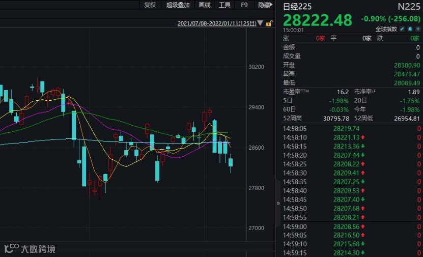 近日,日本股市也持续回调,1月6日至今,日经225指数连收4根阴线,累计下跌了3.78%。