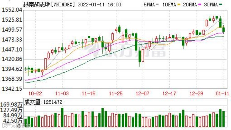 不过,需要警惕的是,随着疫情的卷土重来,在高位越南股市有了调整的迹象。1月10日至11日,胡志明指数分别下跌1.62%、0.76%。