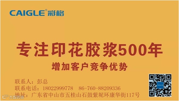 广东彩格科技有限公司成立于1997年,公司总部位于广东省中山市风景优美的五桂山生态保护区,在广东省连州市设有60亩研发、生产基地,是一家集研发、生产、销售于一体的民营独资企业。主要生产产品有固浆、胶浆、烫金浆、金银粉浆、助剂等服装印花材料,产品广泛应用于纺织印染领域。