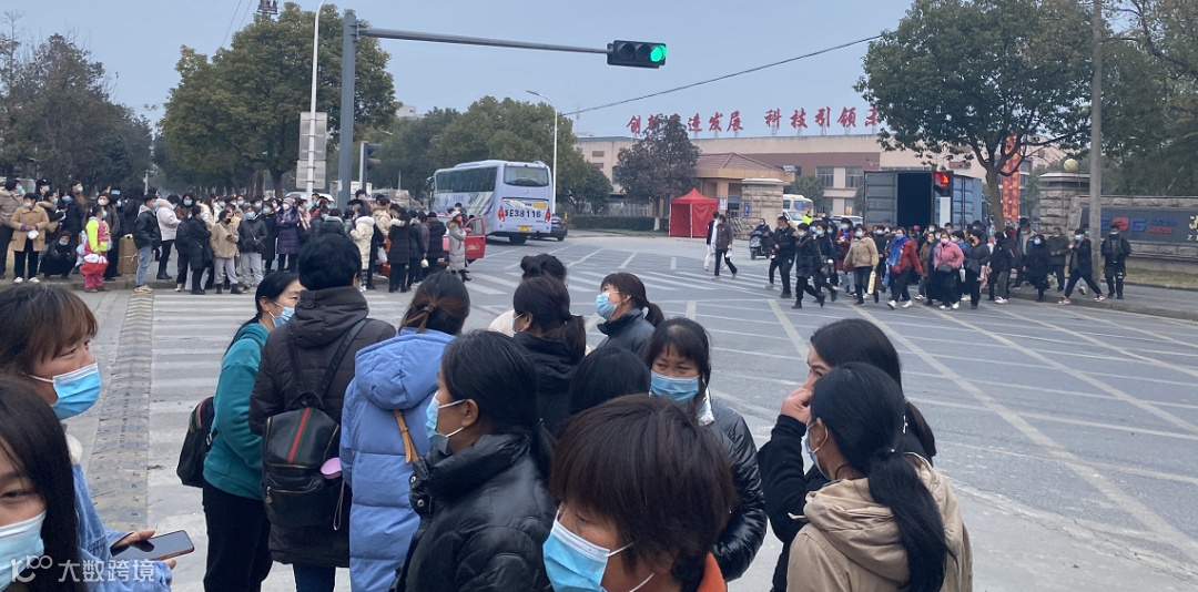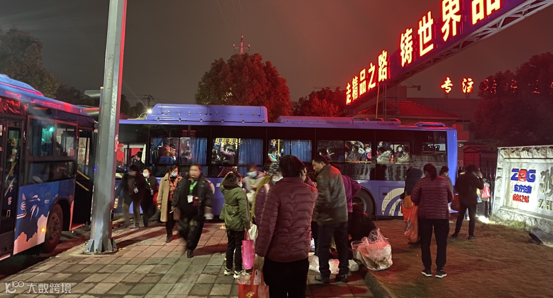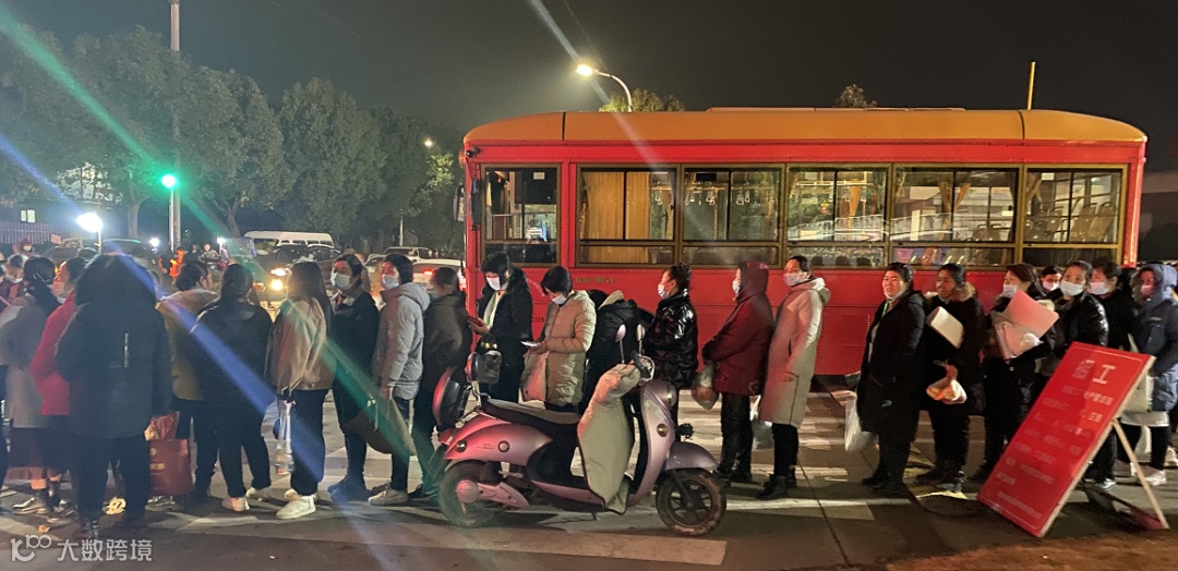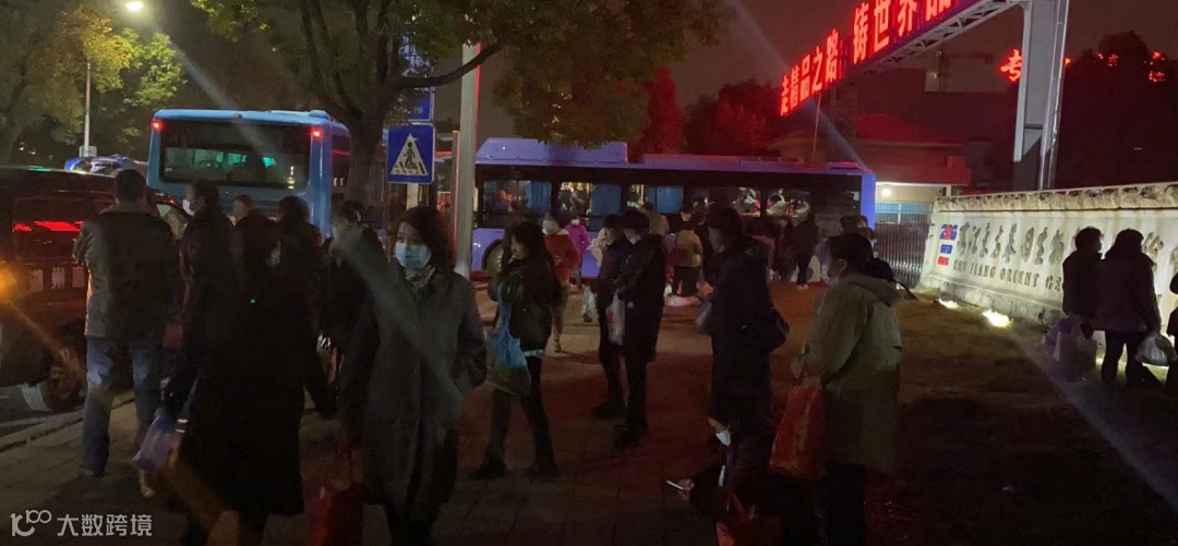 运送东方生物临时工的大巴,主要停靠在工厂西侧的马路边。所以,工厂西侧的一个2-3米小门,也成了临时工下班的重要通道。从下午19:00点开始,这个小门就开始热闹起来,到了19:30的交班时点,眼前的场景不禁让人联想到春运。