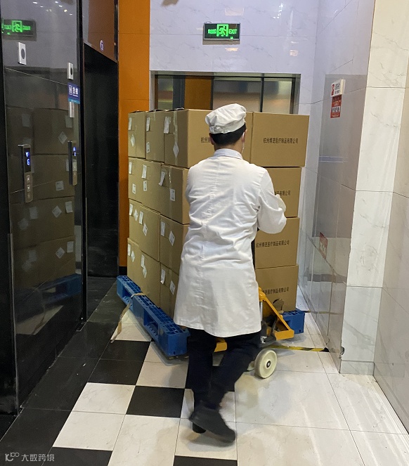 走进安旭生物所在地,园区一栋大楼的外正停着一辆货车,旁边堆放着一摞摞包装好的货物纸箱,数名普通着装的装卸工,正在往一辆小型货车上装货。