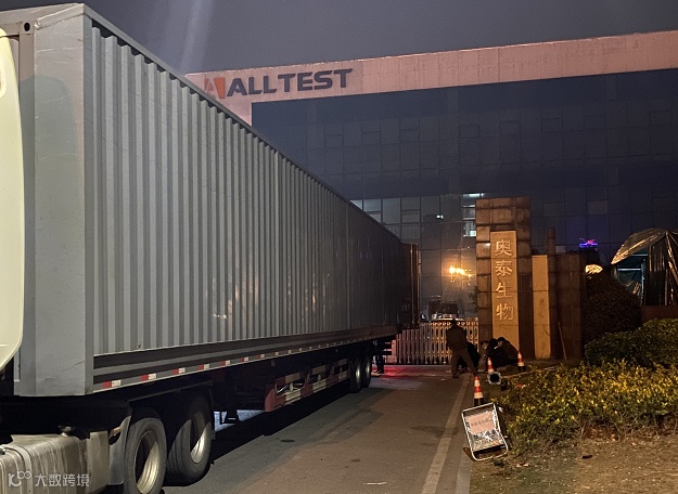 在奥泰生物大门口,两辆升降式叉车,正在给一辆大型集装箱货车装货。开叉车的奥泰生物员工告诉记者,最近一个月来,加班的时间明显比以前多了,感觉总有发不完的货。同时,他还告诉记者,这些纸箱里面包装的只是核酸检测试剂的半成品,还需要拉到其他地方做最后的组装。另外,这辆集装箱货车司机告诉记者,他是杭州一家物流公司司机,以前他们物流公司与奥泰生物没有业务往来,是从2021年12月份开始的新合作。