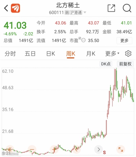 值得一提的是,稀土赛道的另一家上市公司——包钢股份于1月11日披露2021年业绩预告显示,2021年度净利润为24.4亿元~36.5亿元,远不及机构预期的51.4亿元,且在第四季度业绩甚至出现了亏损,亏损金额为1.3~13.4亿元。受此影响,包钢股份连续2日大跌,跌幅超6%。