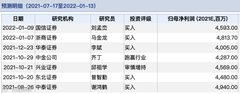 在过去6个月以内,共有7家机构对北方稀土的2021年度的业绩作出预测,其中归母净利润预估均值为45.26亿元,预估最大值为49.4亿元,预估最小值为40.05亿元。
