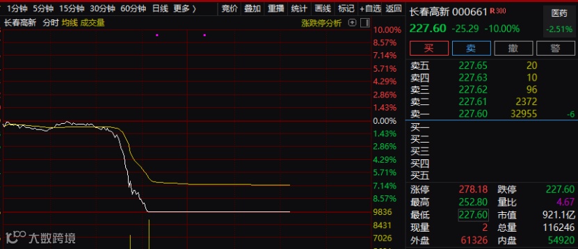 今天早盘,长春高新突然闪崩跌停,处于同一赛道的安科生物大跌近9%。