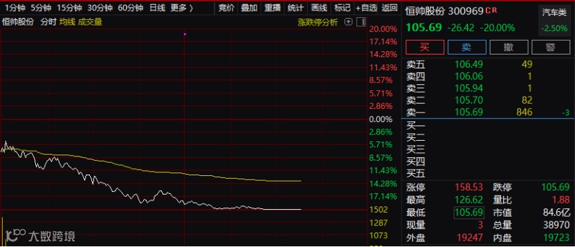 今天还有一只股票暴跌,这才可能是市场杀跌的主因之一。这只股票就是新能车小黑马恒帅股份,该股在持续抵抗之后,终于还是封死跌停板。该股今年最大涨幅接近4倍。