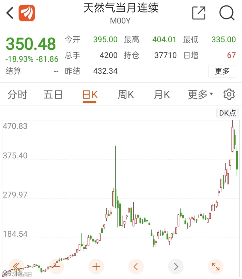 疯狂过后,近2日欧洲天然气的价格稍有回落,当地时间12月23日,受美国天然气下行的影响,欧洲天然气价格一度下跌20%。