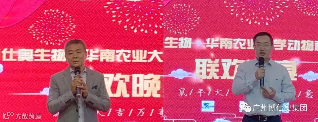 华南农业大学动物科学学院党委书记蔡汇民先生与我司董事长杜景德先生为晚会致辞。