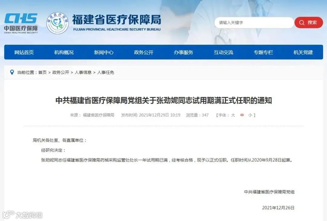 公开报道显示,张劲妮毕业于福建医科大学临床医学专业,曾任福建省医保基金管理中心副主任。