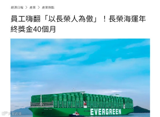 经济日报这样写到:全球货柜轮运价飙涨,长荣海运业绩爆表。今天员工更是嗨到最高点,40个月的年终,不只是羡慕,而是开心的不得了。