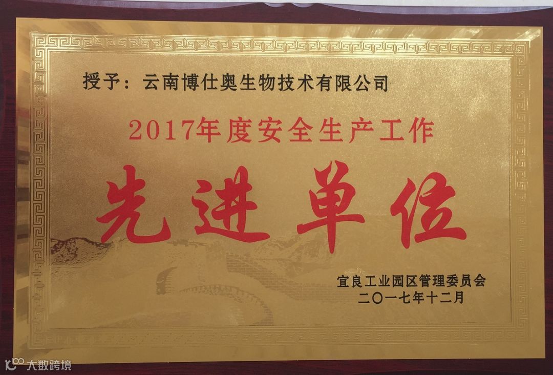 云南博仕奥生物技术有限公司继2016年荣获此殊荣之后,2017年度再次成为宜良工业园区安全生产先进单位,厂长李伟被评为2017年安全生产工作先进个人,这是宜良工业园区管委会对云南博仕奥生物技术有限公司安全生产工作的又一次肯定。