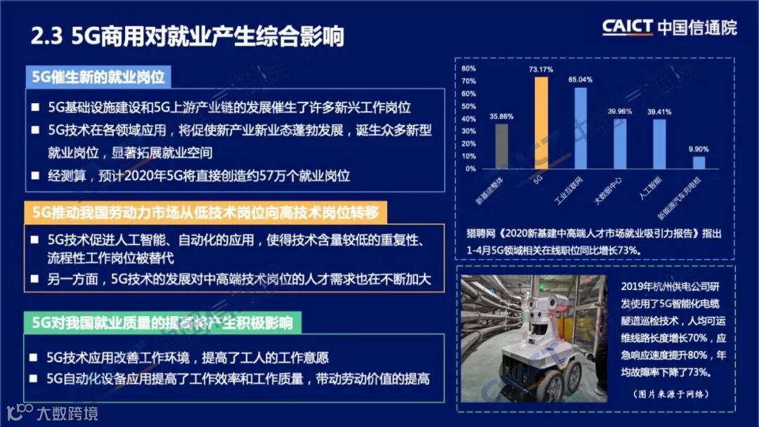 白皮书指出,商用一年来我国已建成全球最大规模的5G商用网络,独立组网率先规模商用,网络性能显著提升,在虚拟专网方面的探索取得积极进展。适度超前的网络建设为5G应用的发展提供坚实基础,5G对经济社会影响潜力开始显现。一是推动ICT产业步入增长新轨道;二是与千行百业的广泛融合,正在为经济社会的创新发展打开广阔空间;三是推动我国就业结构调整升级,催生新的就业岗位并推动劳动力市场从低技术岗位向高技术岗位转移。预计2020年5G将直接带动经济总产出8109亿元,直接带动经济增加值1897亿元。