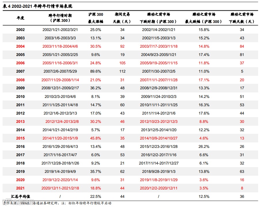 看好一季度行情。我们早在去年11月中旬就提出躁动行情有望提前展开并且可能会跨年,目前来看市场整体走势符合我们的判断,过去两个月尽管指数涨幅目前并不猛烈,但市场的底部已在慢慢抬高,我们认为今年一季度将会延续上涨趋势,具体有三大原因:一是730政治局会议后宽信用政策效果正在显现,居民房贷以及地方政府专项债近期均开始改善。12月8日至10日中央经济工作会议在北京举行,会议要求,2022年经济工作要稳字当头、稳中求进,各地区各部门要担负起稳定宏观经济的责任,各方面要积极推出有利于经济稳定的政策,政策发力适当靠前。12月24日央行货币政策委员会四季度例会表示货币政策增强前瞻性、精准性、自主性,发挥好货币政策工具的总量和结构双重功能,更加主动有为,同时也强调要更好满足购房者合理住房需求,促进房地产市场健康发展和良性循环。央行四季度例会体现了当前政策更加积极,借鉴历史随着逆周期政策力度加大,市场将有不错表现。二是当前ROE尚处在回升周期中,本轮全部A股ROE(TTM)于20Q2见底,20Q3开始回升,至今只持续了5个季度,而随着宽信用政策发力,我们预计ROE上升将持续至22Q1。三是从历次岁末年初躁动行情回顾来看,跨年行情通常每年都有,背后的原因源自于岁末年初往往是重大会议召开时间窗口,同时11月到3月A股基本面数据披露少,且年初资金利率通常有所回落,开年投资者的风险偏好相对更高。