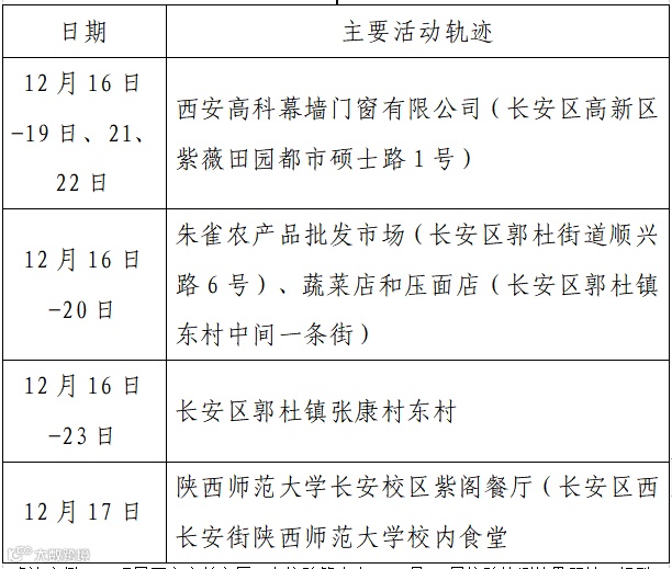 确诊病例138,现居西安市西咸新区。作为重点人员,隔离期间12月23日核酸检测结果阳性,轻型。无公共场所活动轨迹。