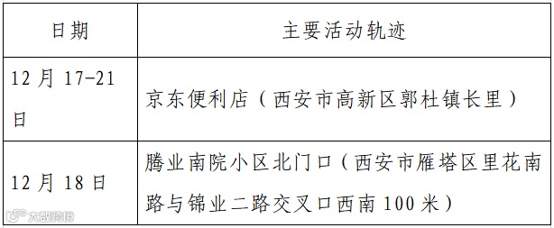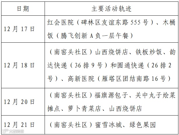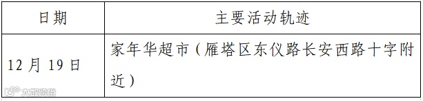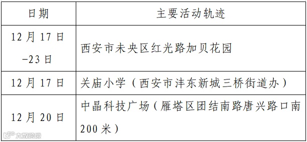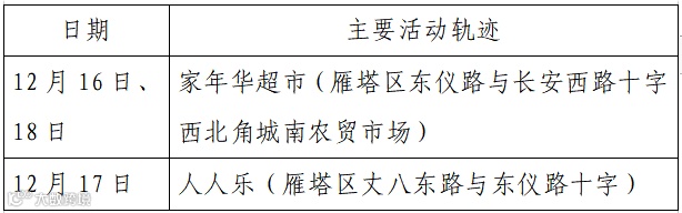 确诊病例3,现居西安市雁塔区,作为重点人员,12月14日被隔离,12月25日核酸检测结果阳性,轻型。无公共场所活动轨迹。