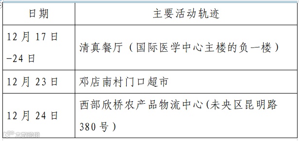 确诊病例133,现居西安市雁塔区。作为重点人员,隔离期间12月25日核酸检测结果阳性,轻型。无公共场所活动轨迹。
