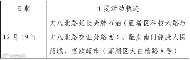 确诊病例19,现居西安市雁塔区,在核酸筛查中,12月24日核酸检测结果阳性,轻型。