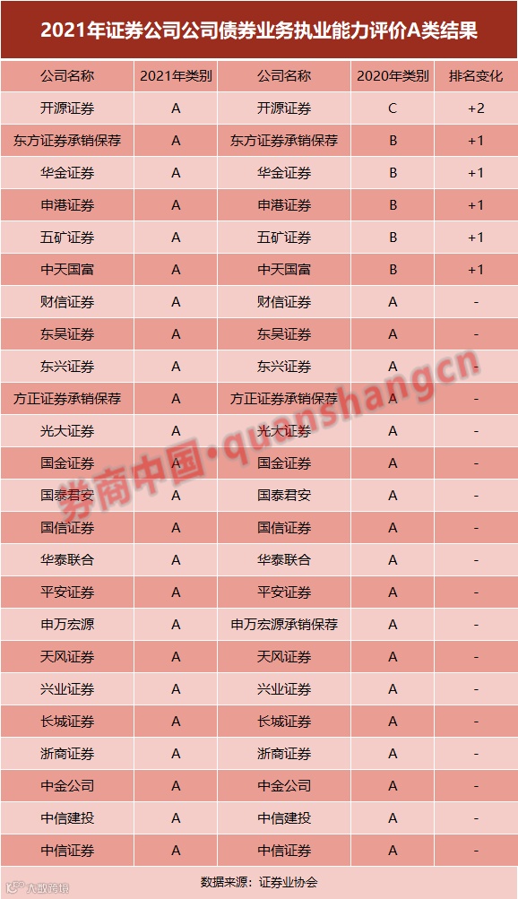 有业内人士指出,此次评价结果是根据今年三季度新修订《证券公司公司债券业务执业能力评价办法(试行)》进行。