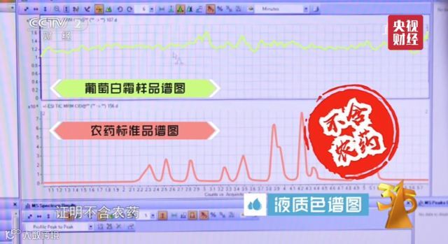 很多人认为,葡萄上的白霜是喷洒的农药残留,吃了会中毒。“3·15”晚会现场,专业的实验室,专业的仪器,专业的检测手段,得出专业的实验结果:葡萄上的白霜不是农药。这种白霜的主要成分其实是无毒无害的天然蜡质,还有少量的糖类等有机质。而真正的农药残留是微量物质,很少能肉眼看见。除了葡萄之外,冬瓜、李子和蓝莓等很多果蔬的表面的白霜,也是同样的物质。