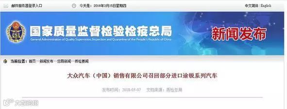 大众途锐汽车发动机进水严重。多名用户的汽车遭遇发动机进水质量问题,进气口外置设计是主要问题。但是进口大众迟迟不给出有诚意的解决方案。直到315之前不久,2018年3月7日,进口大众才发布了召回方案。