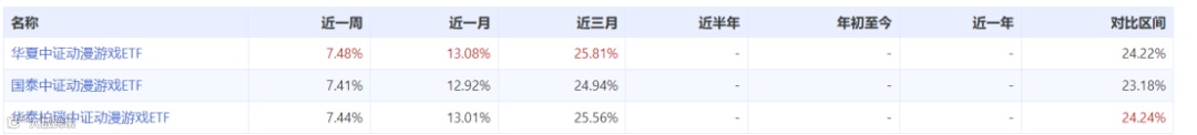 随着元宇宙的升温,3只游戏ETF表现抢眼,近一周大涨分别达7.48%、7.41%、7.44%,近三个月涨幅分别达到了25.81%、24.94%、25.56%。此外,银华中证虚拟现实主题ETF、广发中证传媒ETF、鹏华中证传媒等相关ETF近一周涨幅也均超过4%。