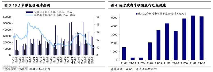 宽信用落地中,驱动行情启动。在前期多篇报告中,我们一直强调看好今年四季度到明年一季度的行情,最主要的逻辑就是730政治局会议后政策明显转向积极,从宽货币走向宽信用。最新社融数据显示,10月新增社融1.59万亿,高于市场预期的1.56万亿,同比多增1970亿元,10月社融存量同比为10.0%,与9月持平,总体上最新社融已经企稳,反映了宽信用政策效果正在显现。政策从宽货币走向宽信用,其中房地产和专项债项目是两大抓手,具体而言: