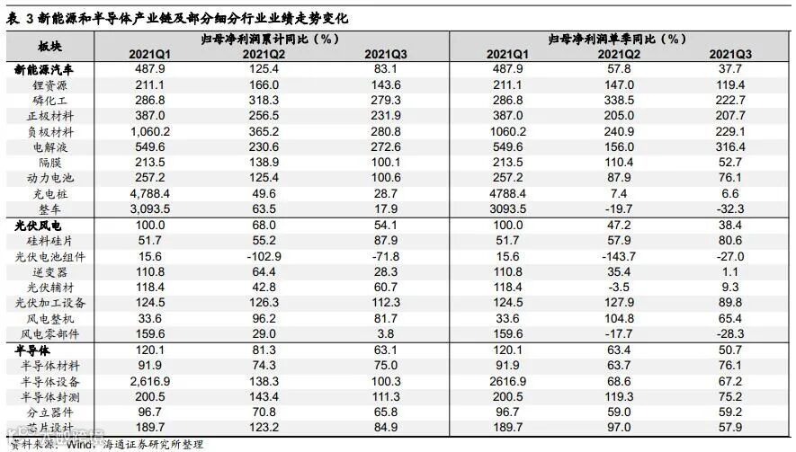 高景气的硬科技。我们在《中国智造系列报告1-5》中一直坚定看好硬科技行业,这些行业基本面较好,股价表现强劲,基本已经得到市场认可。从基本面来看,A股三季报业绩增速放缓,除了受益于原材料涨价的煤炭、钢铁外,仅有新能源产业链和半导体产业链等硬科技行业依旧维持高景气,21Q3/Q2新能源车产业链的归母净利润累计同比为83.1%/125.4%,光伏风电产业链为54.1%/68.0%,半导体产业链为63.1%/81.3%,明显高于全部A股的25%/44%。近期推进碳中和、支持新能源发展的政策频出,11月8日央行宣布推出碳减排支持工具,将以1.75%的优惠利率向清洁能源、节能环保、碳减排技术等重点领域提供政策支持;10月24日中共中央、国务院发布《关于完整准确全面贯彻新发展理念做好碳达峰碳中和工作的意见》和《2030年前碳达峰行动方案》,对碳达峰碳中和工作作出整体部署。此外,全球半导体行业产能依旧紧张,近日台积电宣布将联合索尼公司在日本熊本县建立子公司,以提供起步技术为22/28纳米工艺的半导体生产服务,以应对全球市场的强劲需求。目前市场担心高景气行业估值太高,但我们在《借鉴智能手机看新能源车产业演变-20210906》中指出,今年新能源车产业链类似2010年苹果手机产业链,高景气、高估值,未来几年有望维持高景气,阶段性消化估值需要等市场环境改变,短期来看还不会出现。