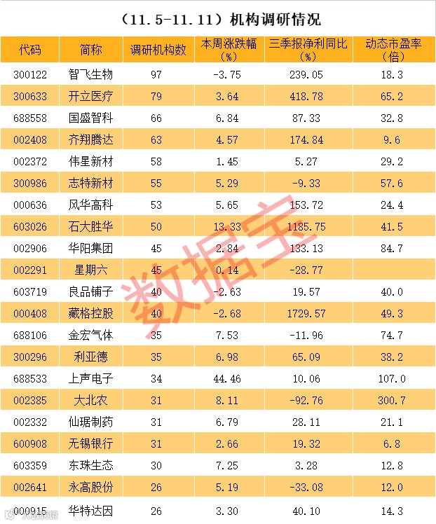 其它调研机构数量较多的股票还有开立医疗、国盛智科、齐翔腾达、伟星新材等,均有50家以上机构调研。