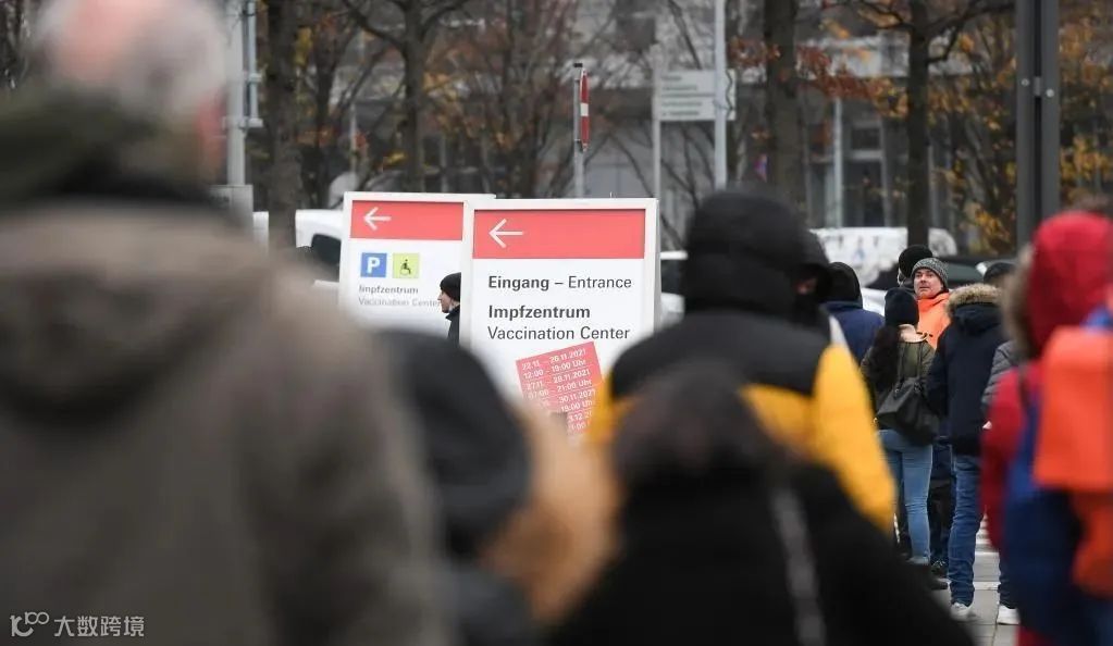 11月25日,在德国法兰克福,人们在一处新冠疫苗中心外排队等待接种疫苗。