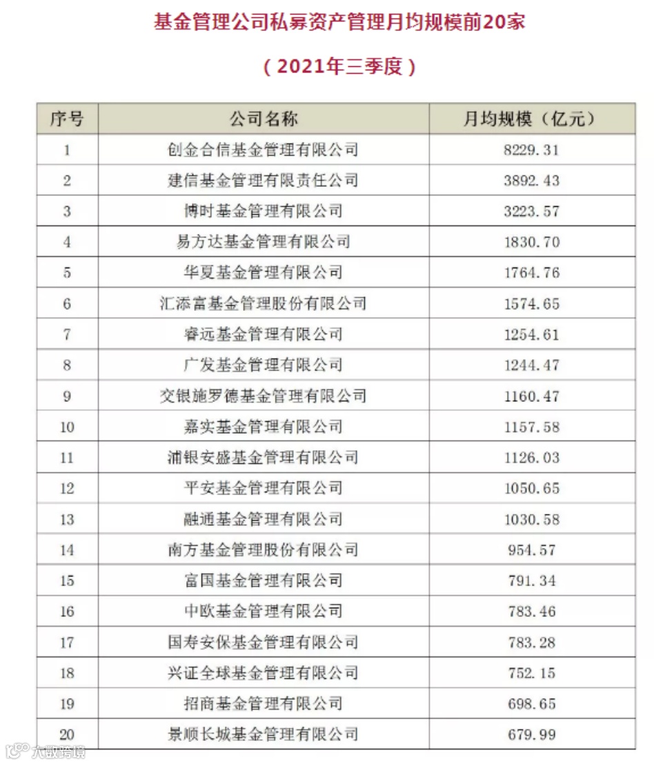 建信基金、博时基金、易方达基金、华夏基金位列公募专户规模第二至五位,月均规模分别为3892.43亿、3223.57亿、1830.70亿、1764.76亿。