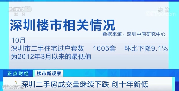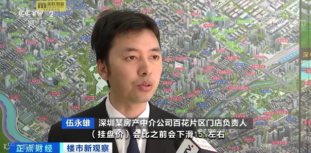 深圳某房产中介公司百花片区门店负责人 伍永雄:经过这几个月的市场数据,挂盘价会比之前下滑15%左右,回到真实成交能流通的,我们在9月份、10月份的流通宗数得出的结论,应该是在现在新的叫价基础上还要下降10%到15%左右。