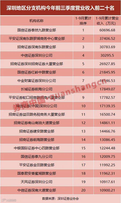 同时,招商证券深圳招商证券大厦营业部、中金财富证券深圳分公司、平安证券深圳深南东路罗湖商务中心营业部今年前三季度股基成交额均在万亿以上。