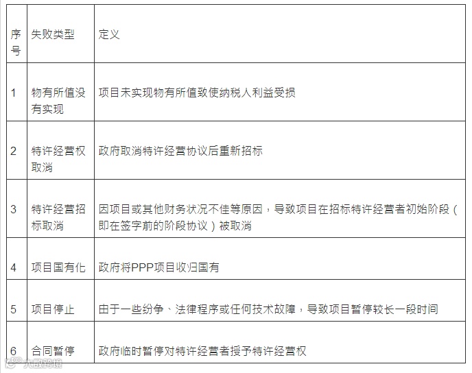 一、PPP项目失败类别和定义