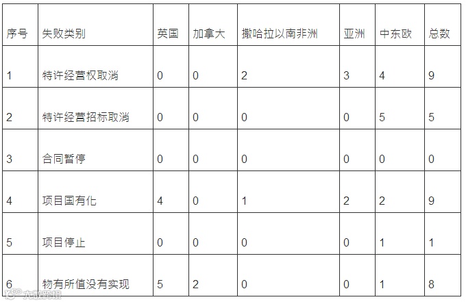 基于以上部分的探讨,可以归纳总结出全球各地PPP项目失败的主要原因及不利影响有以下几方面: