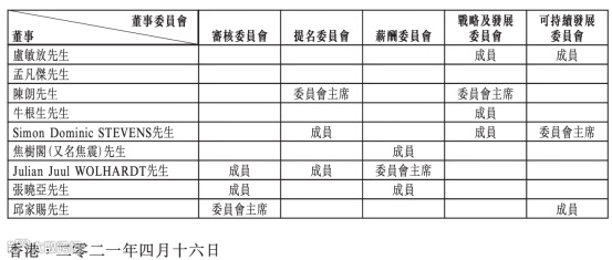 辞任董事的除了牛根生,还包括:孟凡杰辞任执行董事,焦树阁(又名焦震)辞任独立非执行董事及薪酬委员会成员,Julian Juul Wolhardt 辞任独立非执行董事、薪酬委员会主席、审核委员会成员及提名委员会成员,张晓亚辞任独立非执行董事、审核委员会成员及薪酬委员会成员,邱家赐辞任独立非执行董事、审核委员会主席及可持续发展委员会成员。