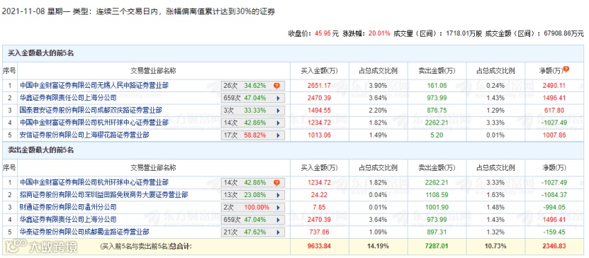 从龙虎榜数据中,也可以看出机构及游资的炒作迹象。