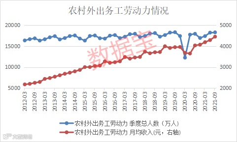 受2020年新冠疫情的影响,全球经济进入了相对低迷状态。经济景气度差,外出务工人员减少。国家统计局数据,2020年我国农民工约2.85亿,较2019年下降517万之多。2021年1-9月,农村外出务工劳动力较疫情前2019年同期有下降。