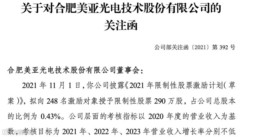 美亚光电因为股权激励计划,收到了深交所的关注函。