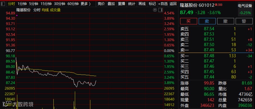 今天早盘,隆基股份杀跌超4%,随后有所回稳,目前市值仍超4700亿元。