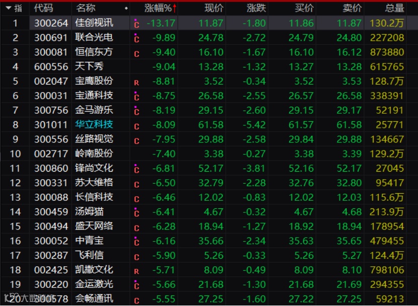 虽然点名的是NFT,但元宇宙概念股也全线杀跌,佳创视讯、联合光电等硬件类个股大跌。
