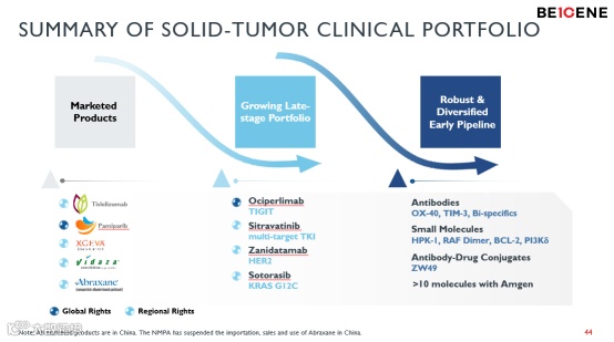 血液肿瘤的重点产品包括:已在多个国家上市的BTK抑制剂泽布替尼,全球化步伐已覆盖超过70个国家,预计近一段时间将继续获得多项批准;Bcl-2抑制剂BGB-11417,临床前研究显示其相比Venetoclax更强效、选择性更高,具备best-in-class潜力,其有望在2022年进入关键性临床阶段;后续管线包括BTK-CDAC、CAR-NK、双抗、ADC等,其中BTK-CDAC预计在今年下半年将完成首例患者给药。