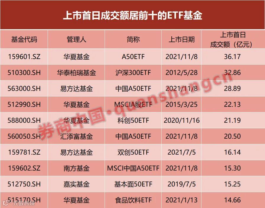 11月8日,首批MSCI中国A50 ETF集体上市。