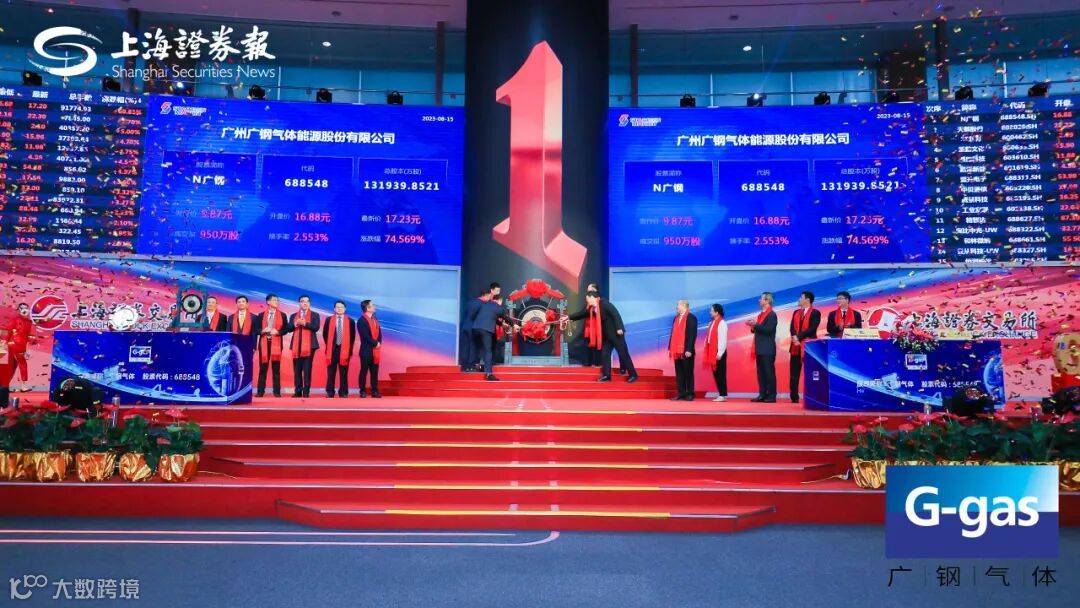 2023年8月15日,广州广钢气体能源股份有限公司(股票简称:广钢气体,股票代码:688548)成功于上海证券交易所科创板挂牌上市。在各界参会领导、嘉宾及广钢气体全国各现场员工的“云参与”共同见证下,广州市人民政府副秘书长,广州市工业和信息化局党组书记、局长高裕跃;广州市人民政府国有资产监督管理委员会党委书记、主任陈德俊;广州工业投资控股集团有限公司党委书记、董事长周千定,副董事长、总经理景广军;广州广钢气体能源股份有限公司董事、总裁邓韬;海通证券股份有限公司党委副书记、总经理李军在上市仪式现场共同敲响了广钢气体科创板上市的开市铜锣,正式拉开广钢气体登陆资本市场,开启企业高质量发展的新篇章。