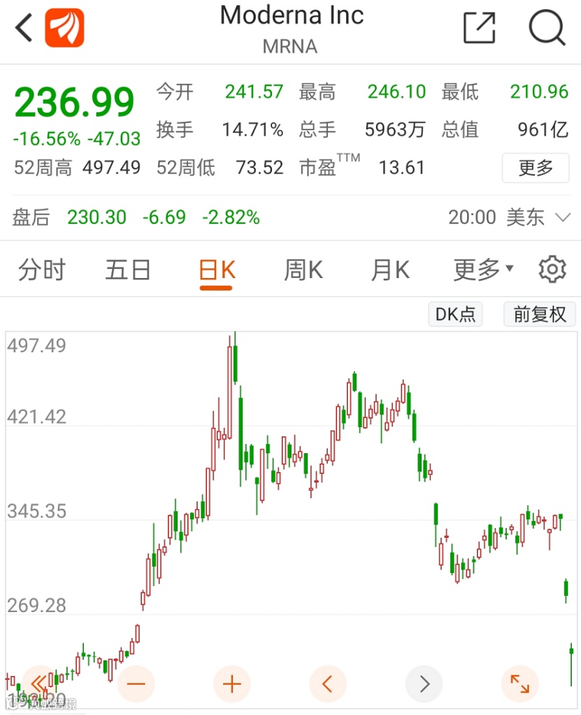 其中,疫苗巨头Moderna更是释放了一则利空预期,其在公布最新业绩的时候,大幅下调了疫苗销售预期。Moderna预计,其新冠疫苗在2021财年的交付量在7亿至8亿剂之间,低于此前预期的8亿至10亿剂,这也让市场对疫苗后续的需求,产生了担忧。