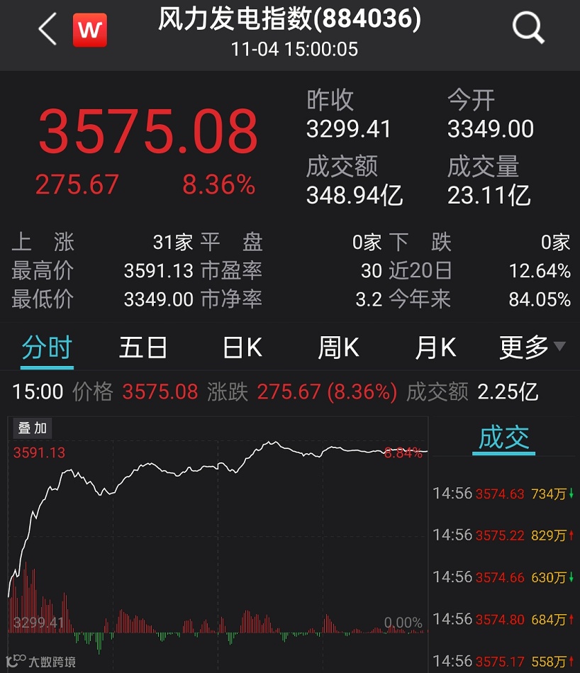 11月4日的A股市场中,风电无疑是新能源赛道中最火爆的存在。