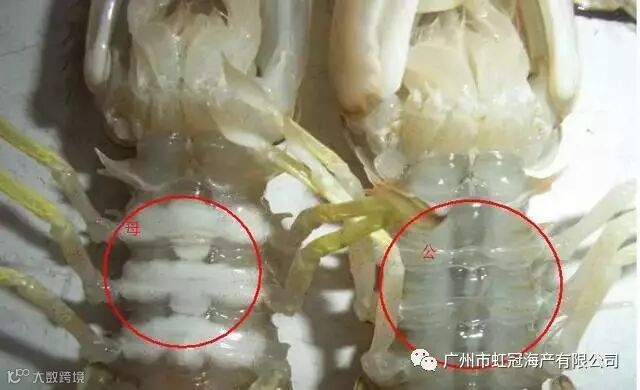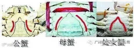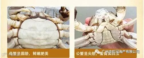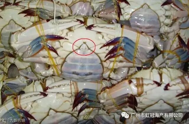 梭子蟹的分辨:公的腹部是三角形而母的是半圆形的,这是最简单的辨别方法。