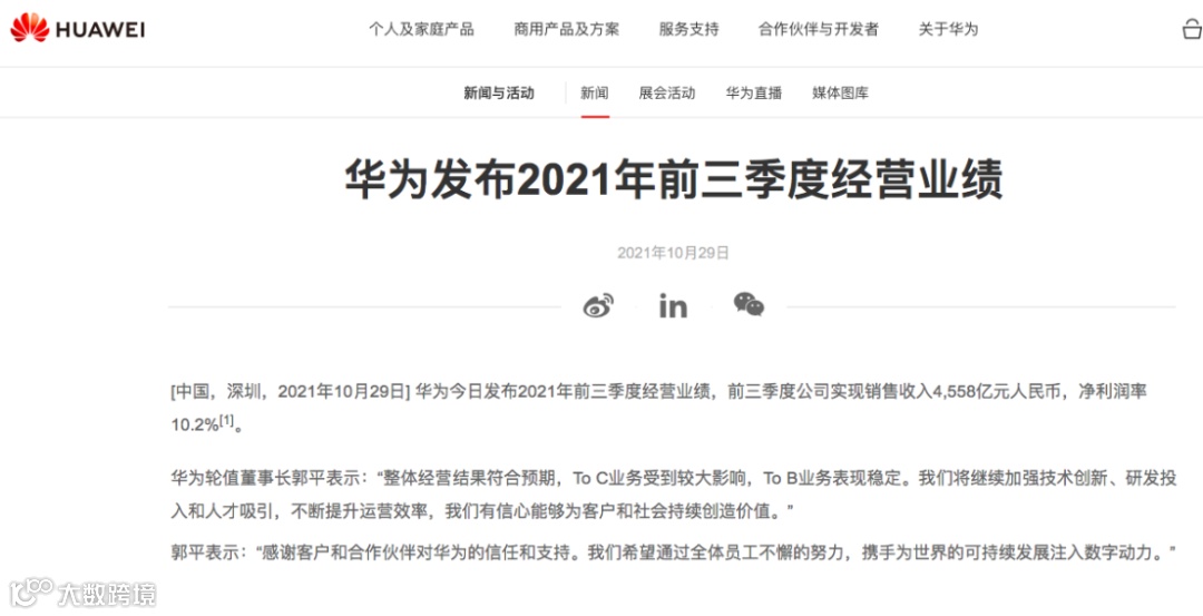 实际上,华为营业收入下滑业界早有预期,受到美国等制裁影响,华为的消费者业务中手机业务供应链出现问题,出现芯片短缺等情况,严重影响了业绩。