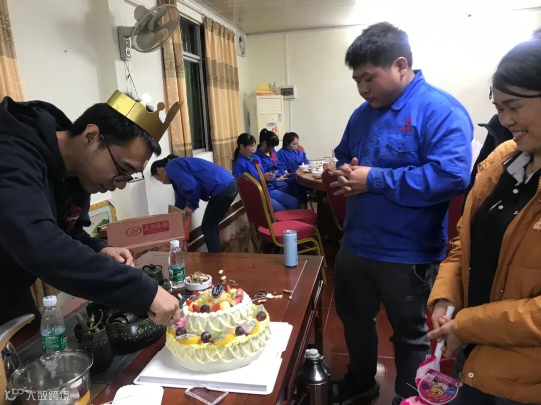 公司为员工准备了蛋糕、水果、饮品等,还用音响放起了生日快乐等歌曲等烘托气氛。