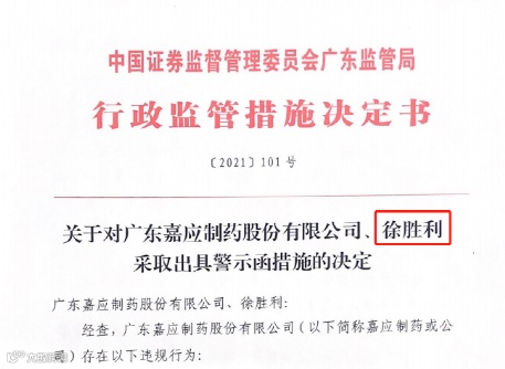 上述行为违反了《上市公司信息披露管理办法》的有关规定,徐胜利作为嘉应制药董事会秘书,未按照规定履行勤勉尽责义务,对上述问题负有主要责任。为此,广东证监局决定对嘉应制药、徐胜利采取出具警示函的行政监管措施。